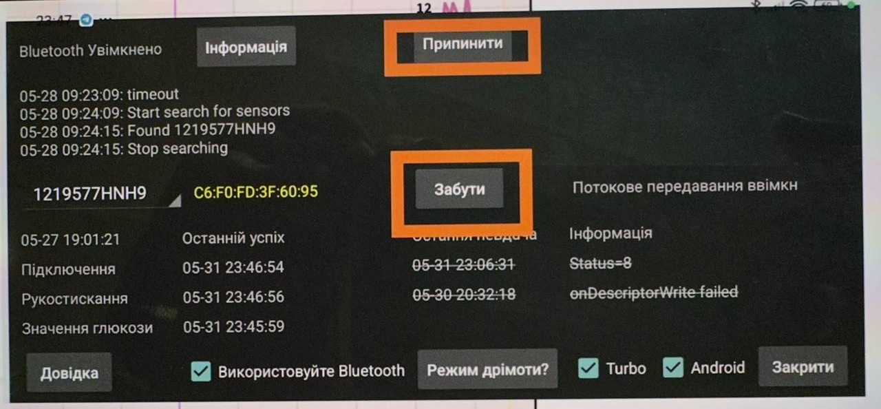 Нажал команду «Забыть» – и через 15 минут связь восстановилась, а показания сахара подтянулись за пропущенный период.