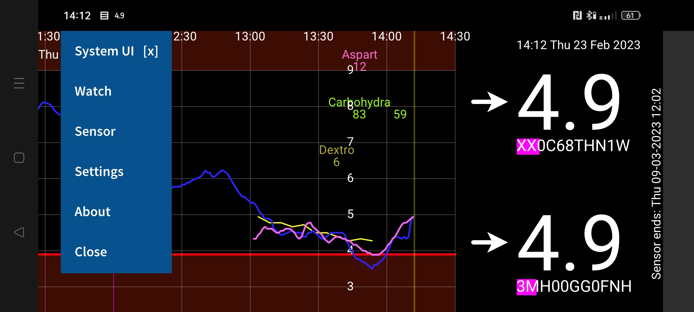 - Juggluco може використовувати сенсори Libre 1 і 2 на 12 годин довше, ніж Librelink: він вважає кінцевою датою 14 днів після дати початку і зупиняється на цій кінцевій даті, але після сканування двічі ви можете використовувати його ще 12 годин. Це не стосується сенсорів Libre 3, вони працюють тільки 14 днів і кілька хвилин.
