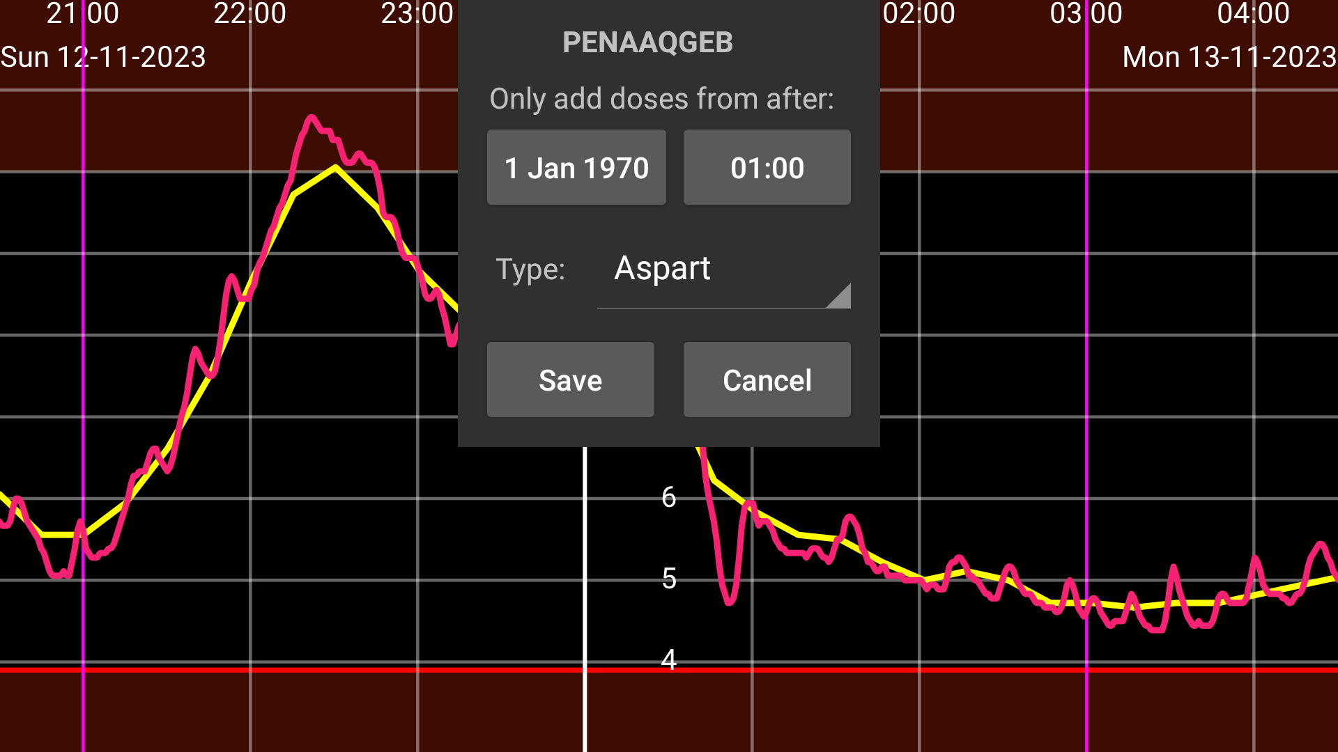 Juggluco 4.13.0 та новіші версії містять підтримку інсулінових ручок NFC NovoPen® 6 і NovoPen Echo®Plus. Просто прикладіть задню частину ручки до NFC-сенсора у вашому телефоні з Juggluco на передньому плані. Після цього ви можете вказати, з якою міткою зберігати нові значення. У випадку, якщо ви раніше вручну вводили дані про дози інсуліну, ви можете вказати, що слід додавати тільки дози після певної дати та часу.