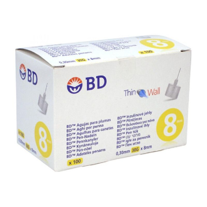 Иглы для инсулиновых ручек "BD Microfine Thin Wall" 8 мм (30G x 0,30 мм), 100 шт.