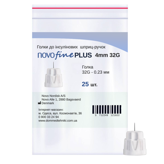 Иглы для инсулиновых шприц-ручек Новофайн Плюс 4 мм - Novofine Plus 4 мм 32G, поштучно (фасовка по 25 шт.)