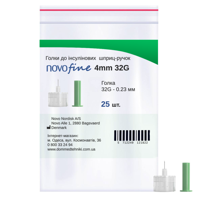 Иглы для инсулиновых шприц-ручек Новофайн 4 мм - Novofine 4 мм 32G, поштучно (фасовка по 25 шт.)