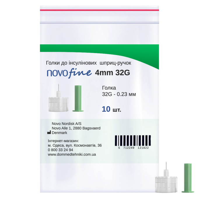 Иглы для инсулиновых шприц-ручек Новофайн 4 мм - Novofine 4 мм 32G, поштучно (фасовка по 10 шт.)