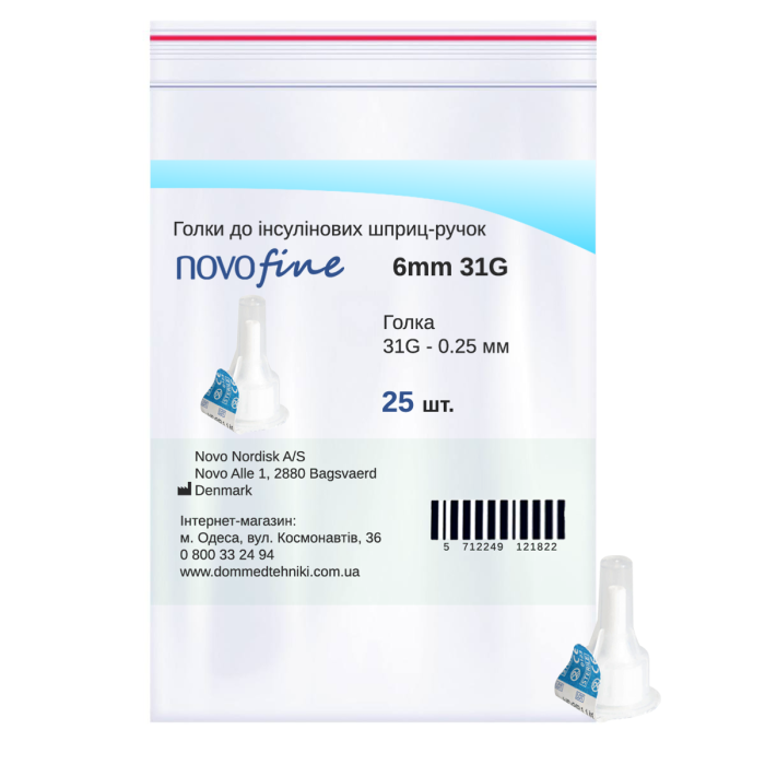 Иглы для инсулиновых шприц-ручек Новофайн 6 мм - Novofine 31G, поштучно (фасовка по 25 шт.)