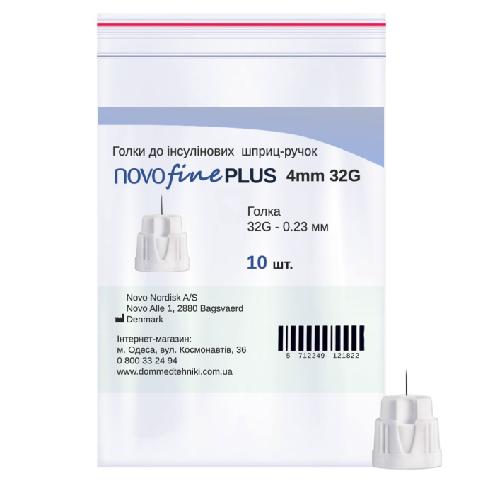 Иглы для инсулиновых шприц-ручек Новофайн Плюс 4 мм - Novofine Plus 4 мм 32G, поштучно (фасовка по 10 шт.)