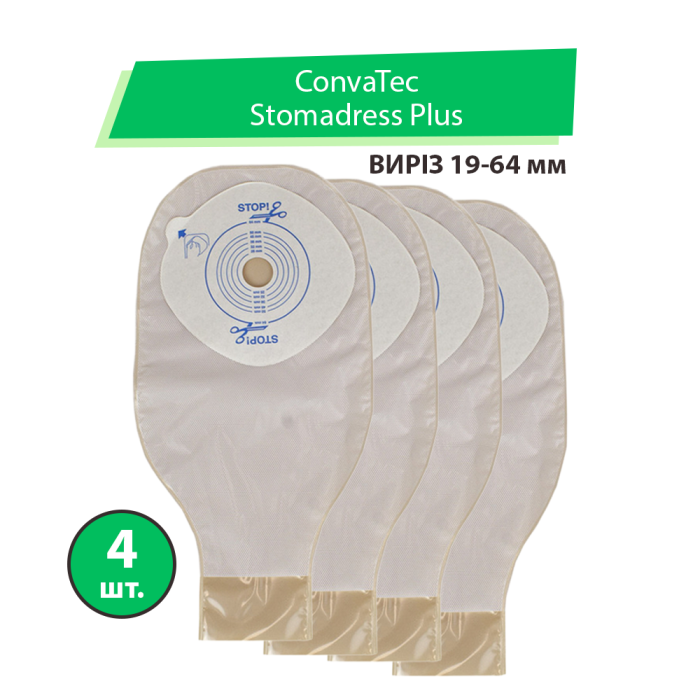 Калоприемник Convatec Stomadress Plus | Стомадресс Плюс (однокомпонентный, открытый, непрозрачный) вырез 19-64 мм, 4 шт.