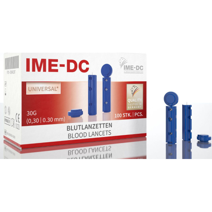 IME-DC-Lancets – сверхтонкие универсальные инъекционные ланцеты. Универсальные ланцеты IME-DC-Lancets от немецкой компании IME-DC имеют стандартную форму. Подходят ланцеты под большое количество автопрокалвателей, которые используются для получения образца крови из кончика пальца или альтернативных мест. Толщина ланцета (иглы) – 0,3 мм (30G). Сверхтонкие скарификаторы IME-DC 30G рекомендовано Всемирной организацией здравоохранения.