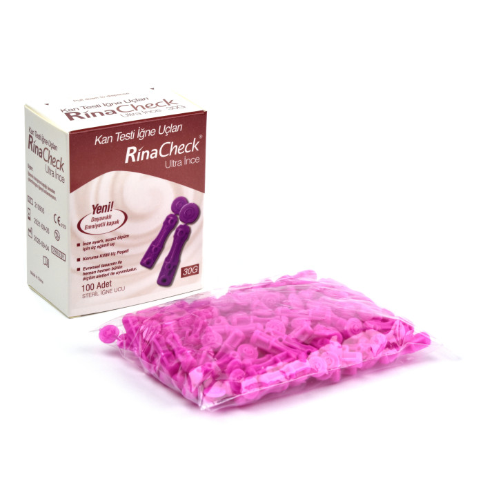 Rina Check Lancets – сверхтонкие универсальные инъекционные ланцеты. Универсальные ланцеты Rina Check Lancets от тайваньской компании Leison Biotech Co., LTD. имеют стандартную форму. Подходят ланцеты под большое количество автопрокалвателей (кроме Accu-Chek), которые используются для получения образца крови из кончика пальца или альтернативных мест. Толщина ланцета (иглы) – 0,3 мм (30G). Сверхтонкие скарификаторы Rina Check 30G рекомендовано Всемирной организацией здравоохранения.