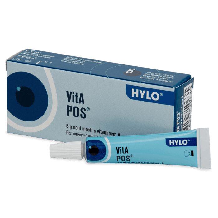 Глазная мазь VitA POS® разработана для лечения сухих глаз. Его можно использовать для предотвращения неприятного царапания глаз при их открытии после пробуждения. Глазная мазь VitA POS® особенно подходит для использования во время сна. Мы рекомендуем использовать увлажняющие глазные капли HYLO COMOD® или HYLO® GEL в течение дня.