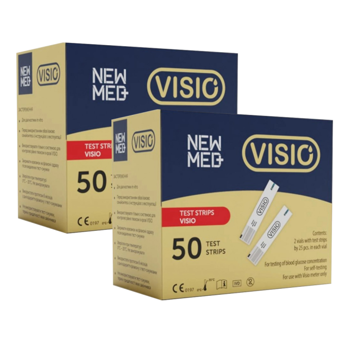 Тест-полоски VISIO от бренда NEW MED (Австрия) идеально совместимы с глюкометром VISIO этого производителя. Тест-полоски идут в комплекте по 50 шт.(2 тубуси по 25 шт.) В основе измерения глюкозы с помощью тестовых полосок VISIO лежит ферментативный глюкозооксидазный метод. Такой метод характеризуется особой точностью полученных результатов. Благодаря автокодировке погрешность данных, полученных с помощью тест-полосок VISIO, не превышает 0,03 %.