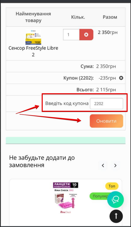Никаких дополнительных условий – просто оформляйте ваш заказ на сайте через корзину, вводите 2202 в поле Купон, нажимайте Обновить и получайте ваш товар по выгодной цене.
