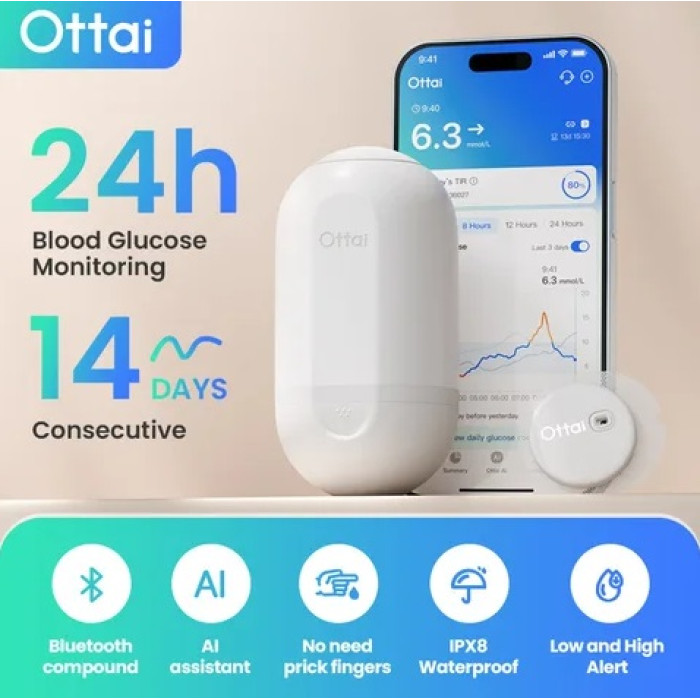 Вслед за известными и ставшими уже привычными аналогичными продуктами, уверенным шагом набирает популярность система непрерывного мониторинга глюкозы Ottai производства китайской компании Ottai Technology Wuxy Pty., Ltd.