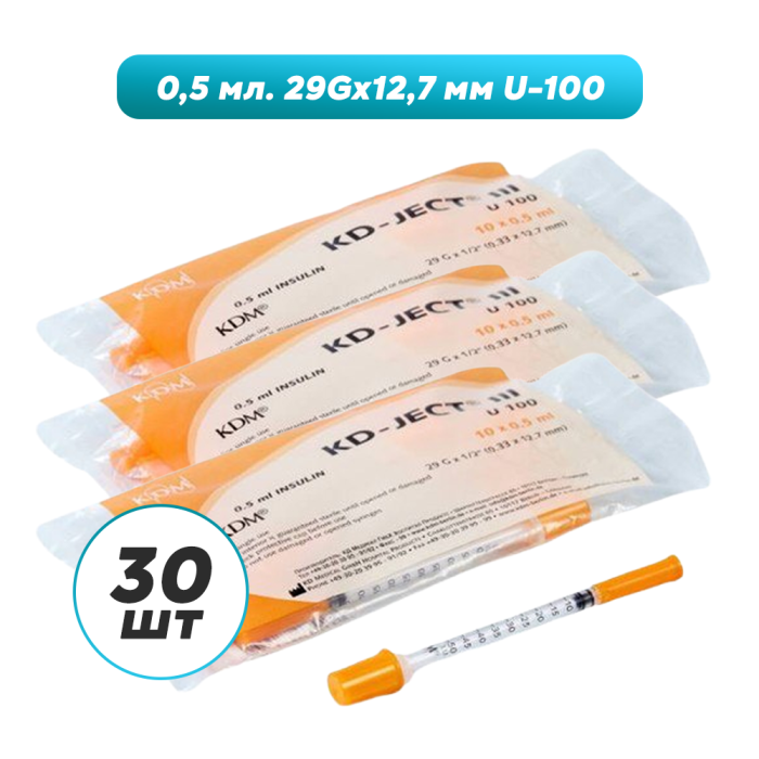 Шприцы инсулиновые с интегрированной иглой KDM KD-JECT III 0.5 мл U-100 (12.7 мм х 29G), 30 шт.