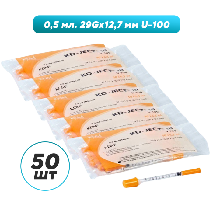 Шприцы инсулиновые с интегрированной иглой KDM KD-JECT III 0.5 мл U-100 (12.7 мм х 29G), 50 шт.